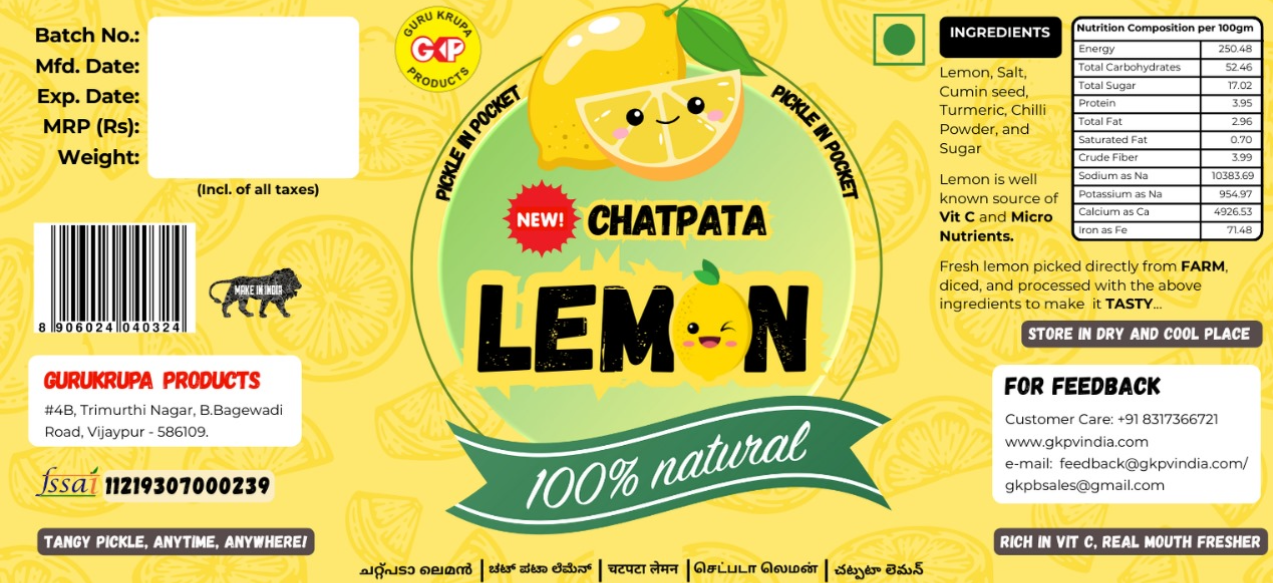 Description: A zesty and tangy mouth freshener made from 100% natural lemon and select spices. This chatpata mix is the perfect palate cleanser and is guaranteed natural.